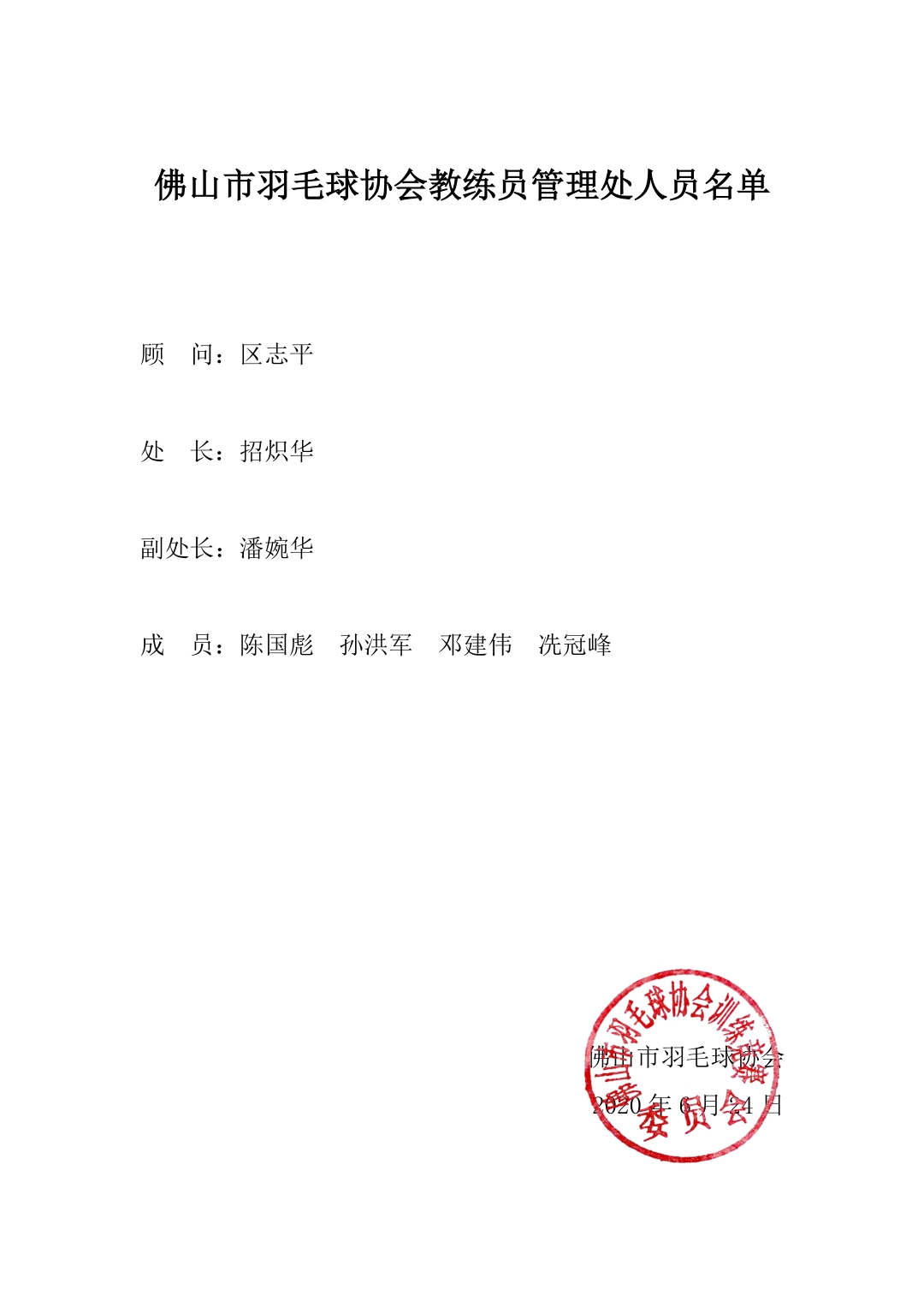 佛山市羽毛球协会教练员管理处