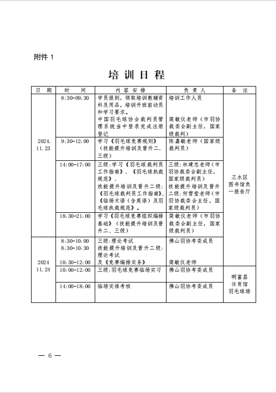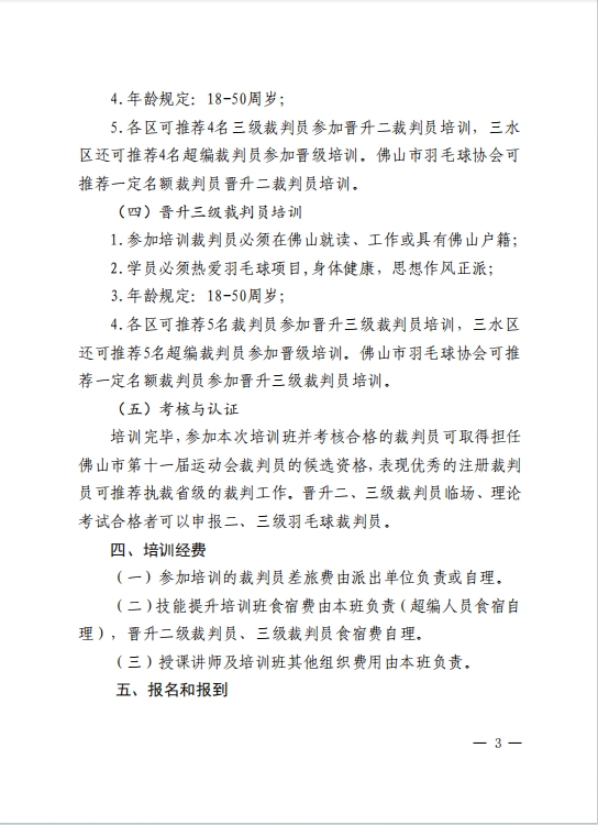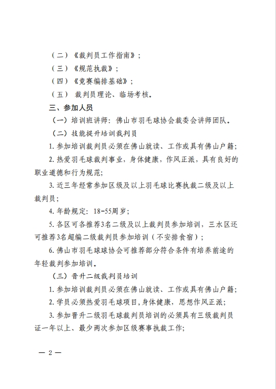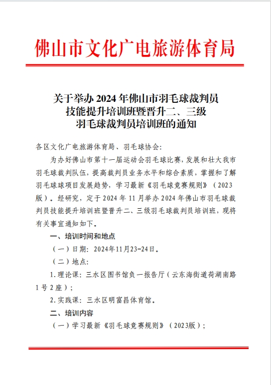 关于举办2024年佛山市羽毛球裁判员技能提升培训班暨晋升二、三级羽毛球裁判员培训班的通知
